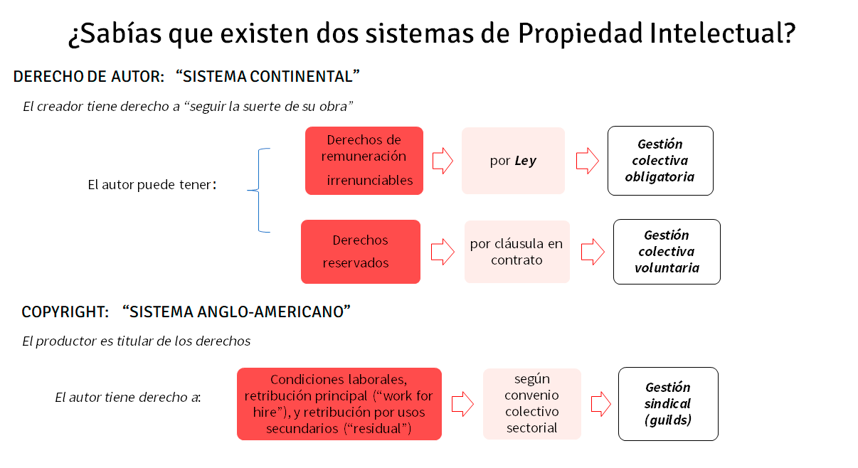 En él se integran el sistema de reparto, el registro de obras audiovisuales y la gestión de ingresos por derechos de guionistas, argumentistas, directores y realizadores o traductores-adaptadores.